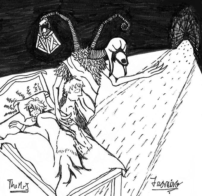 Psychopomp + Nightmares #Dia20#inktober2021 "...siempre es expectante y se muestran voraces ante la situación, pero manteniendo la misma actitud de mostrar un camino, pidiendo que se les siga..."