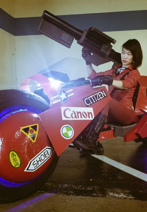 Our @iyamjosephine doing an awesome Kaneda #cosplay with his iconic blazing-red motorcycle along for the ride! [[At @animeexpo]] #AnimeExpo2019 #AnimeExpo #akira #anime #AX19