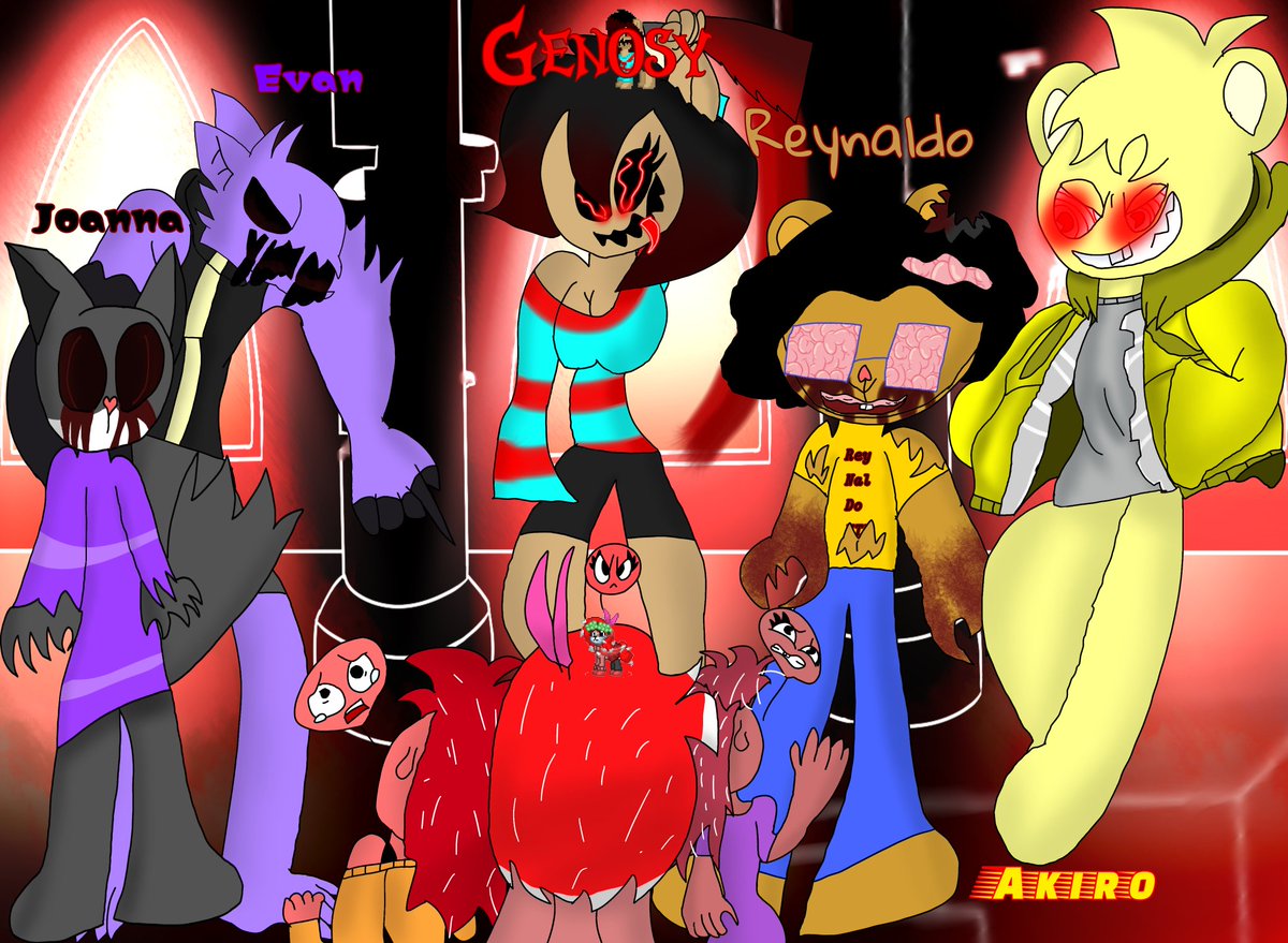 "Welcome to Judgment Hell Flakys." Genosy has killed a couple of people. And made them into lost souls. And gave Akiro the fake chaos emeralds. Ocs belong to @AsiaJOANNA6, @_EV_HTF, @ReynaldoHTF, and @Akiro_451. #HTF #happytreefriends #ocart #ocs #OC #undertale