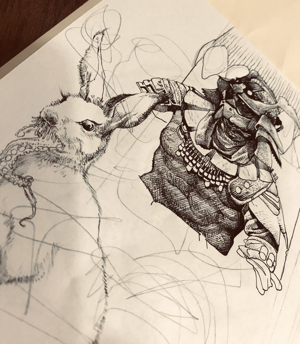 Starved for attention- inks for page 6. Script by Ian D. Jones, art by @theqmethod. #makingcomics #paidgig #mexicanart #horror #thebackrooms #inktober #penandink #webcomic