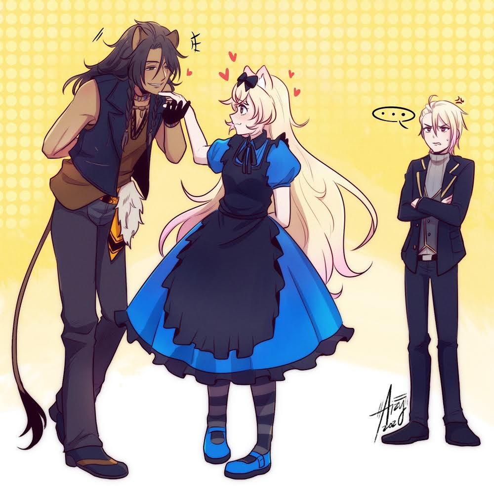 AU where Crystal lives in Twisted Wonderland with her brother(@laizy_boy04’s OC) Jozell, and falls in love with Leona 🧡🖤 THANK YOU @laizy_boy04 FOR DRAWING THIS!! 💕💕💕💕💕💕💕💕💕💕💕💕💕💕💕💕 #twistedwonderland#twstプラス