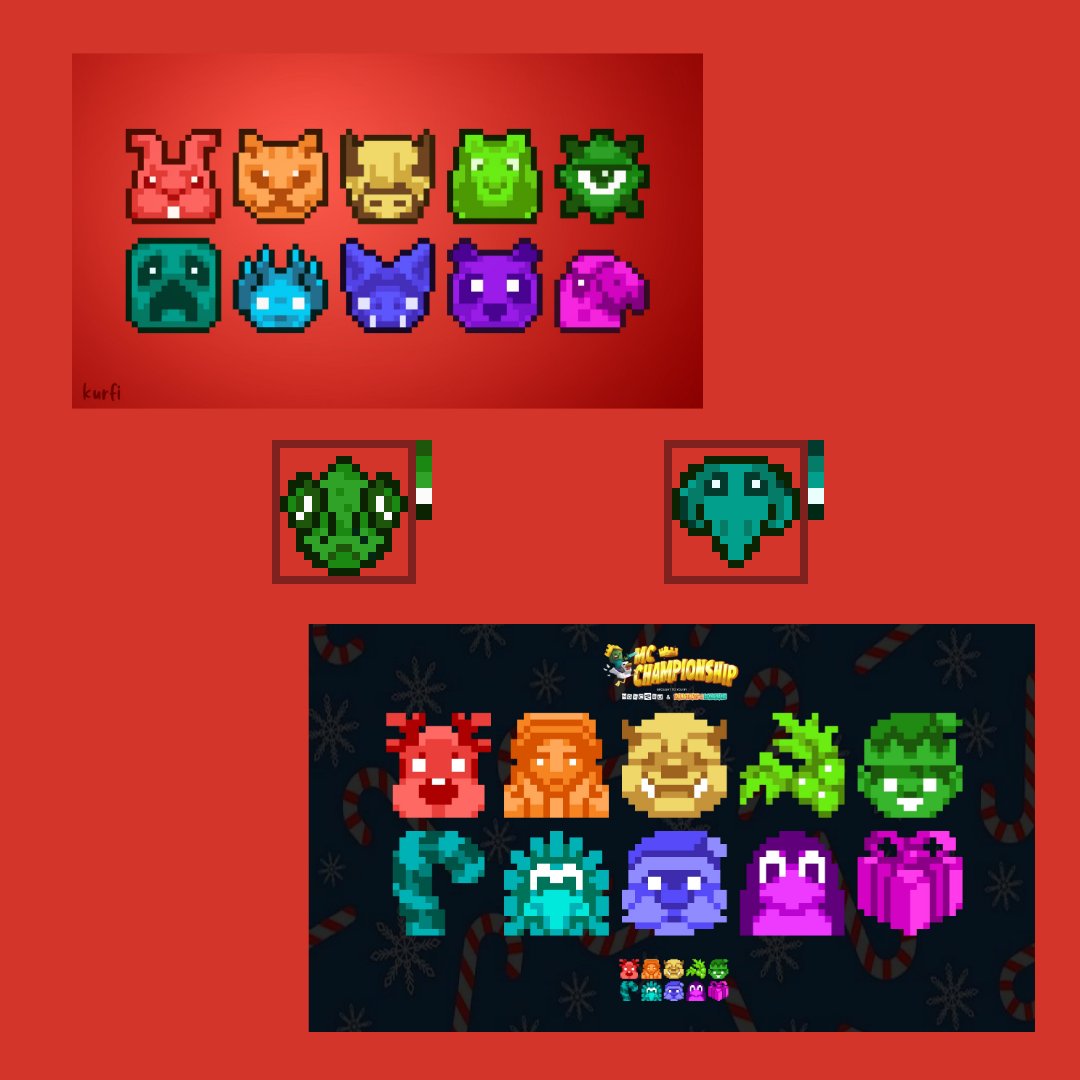 i'm not a pixel artist, but i took a first pass at some icon concepts for the teams i think should replace the green guardians and cyan creepers - the green geckos and the cyan crows! (the gecko is significantly cuter than the crow we don't talk about the crow) #mccfanart