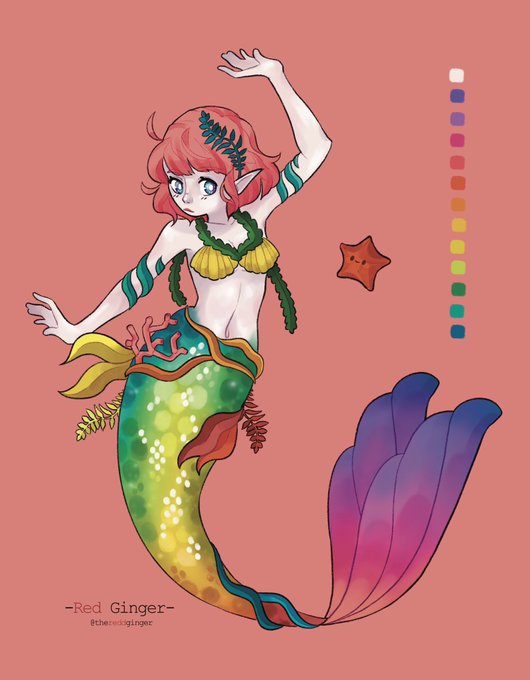 esta segunda sirena me ha llevado un poco más de tiempo, pero me ha encantado! ♥️ la lista era 🌈 cola arcoiris 🤍 piel perlada 🪸 complementos de flora marina 🌸 peinado bob con flequillo rosa ✨ ojos galaxia ⭐️ mascota estrellita de mar qué os parece?? #mermay #mermay2023