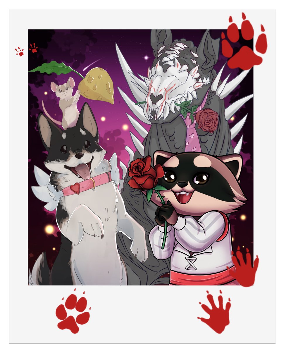 I wouldn't be me if I didn't immediately take the chance to draw a raccoon 🦝💗 Happy Valentine's Day! 【ft. @justHaroo (The Hound) & @x_xwhiterose (Zwei & Little)】 #RWBYValentinesDay #RWBYfanart