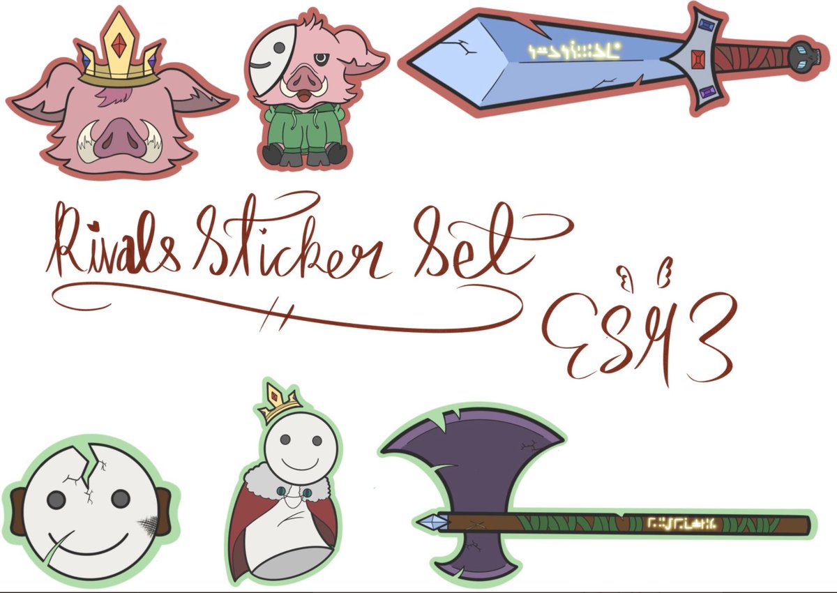 Just a Rivalstwt sticker set I designed for myself to decorate my college laptop. Can't wait to print them :3 (The sword says "subscribe" and the axe says "nightmare") #rivalstwtfanart #technobladefanart #dreamfanart