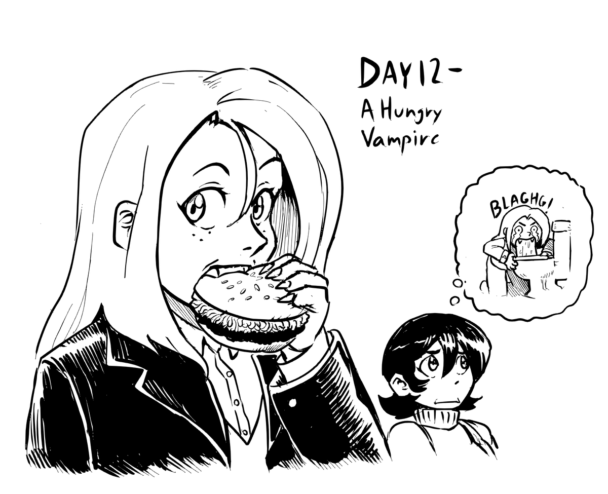 Day 12 - A hungry vampire boy Lias and Rani belong to @cranberrysoap #inktober2022 #inktoberday12 #OCs #fanart