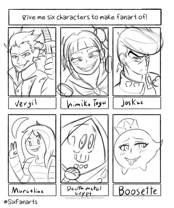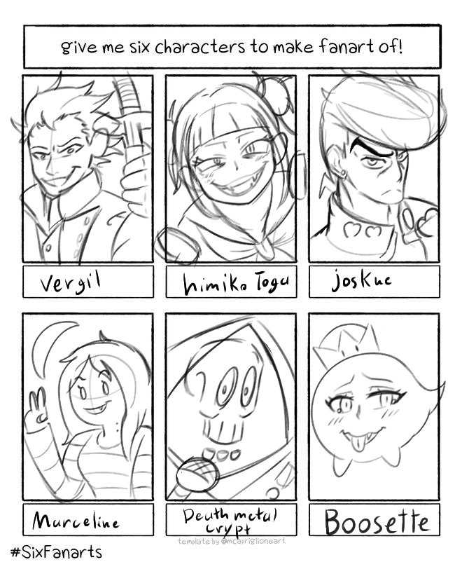 IT IS DONE!!! #SixFanarts #DMC5 #MyHeroAcademia #JoJosBizzareAdventure #AdventureTime #Necrodancer #Boo(sette)