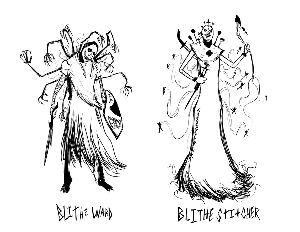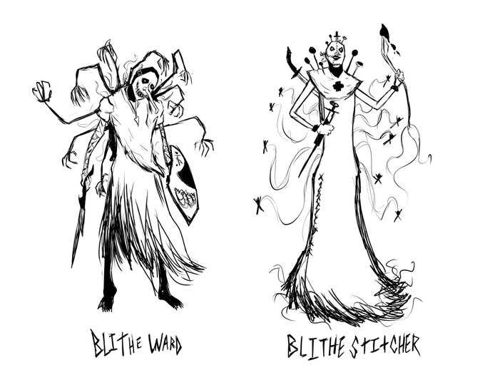 I drew some more for Forgotten Havens. A Blithe Ward and a Blithe Stitcher. Protection-styled warrior and a healing styled doctor. #ttrpg #rpg #TTRPGRising #tabletopgaming #DnD #dndart #dnd5e #art #ArtistOnTwitter #artwork #artist #Artists #darkfiction #darkart