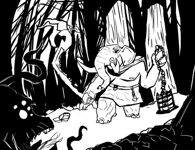 I really love Elephants... a lot. A Fragmented Lightbringer fending off some creatures when traveling through the woods. #ttrpg #TTRPGs #ttrpgsolidarity #dnd5e #DnD #dndart #artistsontwitter #morkborg #ArtistOnTwitter #artist #artwork #darkart #darkfiction