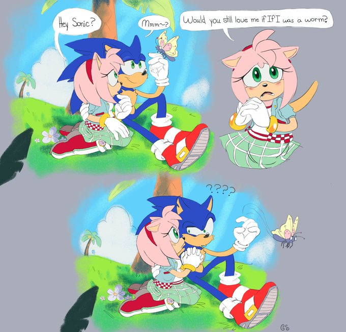 "I dunno Ames! Depends on what kind of worm~" #SonAmy #SonicTheHedgehog #amyrose #sonicfanart