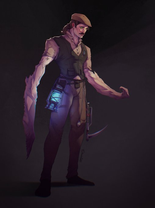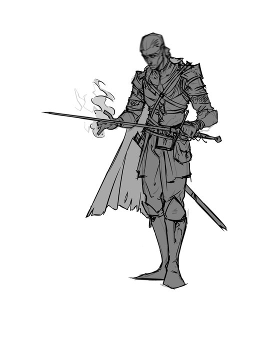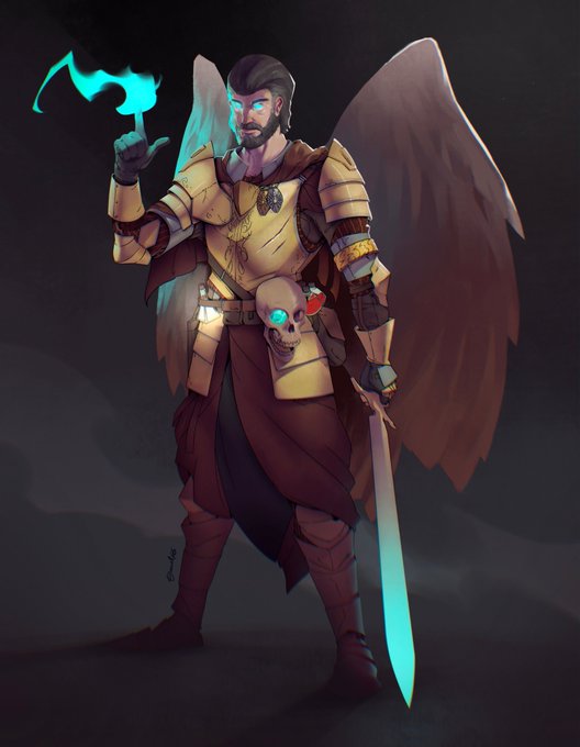 The majority of our art has yet to be finished, but we got a sneak peak at one of our Split Party players! Rubin Olsen - The Witch Hunter Paladin, worshiper of the Arch Daemon Tormach. #ttrpg #ttrpgfamily #ttrpgsolidarity #grimhollow #dndart #darkfantasy #dungeonsanddragons