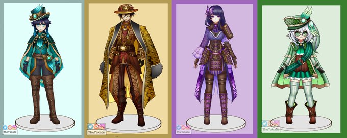 [Archons][Fontaine Inspired in Traditional Outfits] Worth of my time to design this. Thank you guys for your patience and appreciation. #GenshinImpact #genshintwt #genshinimpactfanart #genshinart #venti #zhongli #ei #RaidenShogun #Nahida #steampunk
