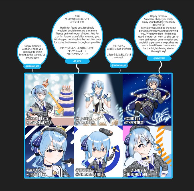 Happy Birthday and 4th Anniversary Sui-chan! I have here gathered together a few artists that agreed to collaborate together with me to make some amazing art for this collage! Please enjoy them~ #星街すいせい生誕祭2022 #ほしまちぎゃらりー #ほしまちすたじお #星街すいせい4周年