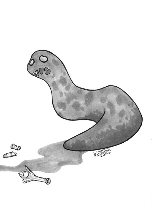 Inktober 11/12: Disgusting/Slippery Someone's science experiment has escaped and it leaves a slimy, slippery trail in its wake. #inktober #inktober2020 #inktoberdisgusting #inktoberslippery #slime #slimemonster #ArtistOnTwitter