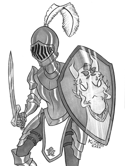 Inktober 14: Armor I did my best to make the dragon look like it was reflecting onto the shield, not totally happy with the results. #inktober #inktober2020 #inktoberarmor #suitofarmor #knightober #knight #femaleknight #dragon #ArtistOnTwitter