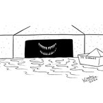 Inktober 10: Hope A sailor finds hope while in a storm. #inktober #inktober2020 #inktoberhope #fisherman #thunderstorm #rain #ArtistOnTwitter