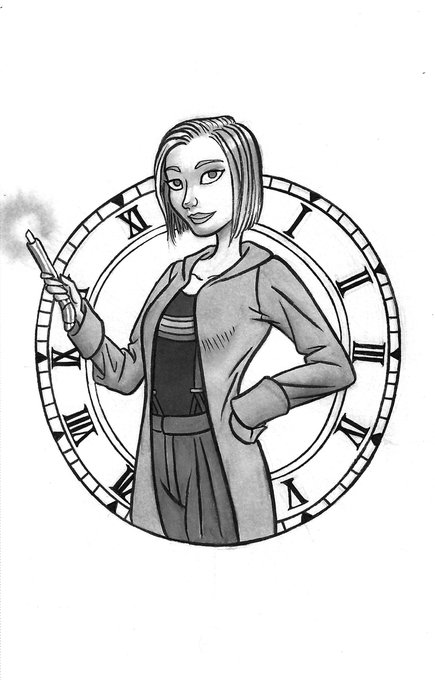 Inktober 52 Week 39: Time I couldn't resist drawing my favorite Time Lord for this prompt. 😊 #timelord #13thdoctor #jodiewhittaker #doctorwho #doctorwhofanart #traditionalfanart #clock #inktober #inktober52 #inktober52time #tombowbrushpens #artistloftmarkers #artistontwitter