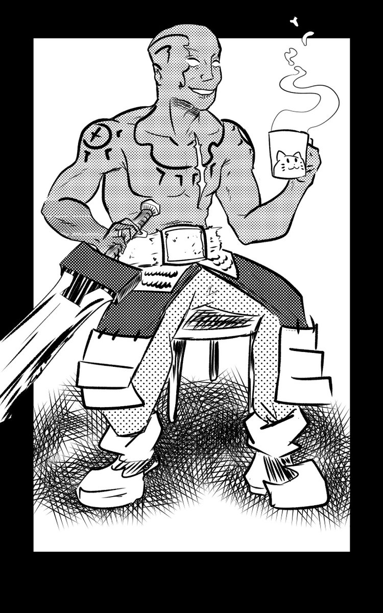 Goliath Fighter tomando su cafe en la mañana #inktober2021 #dungeonsanddragons #dndtober #DnDcharacter #goliathfighter