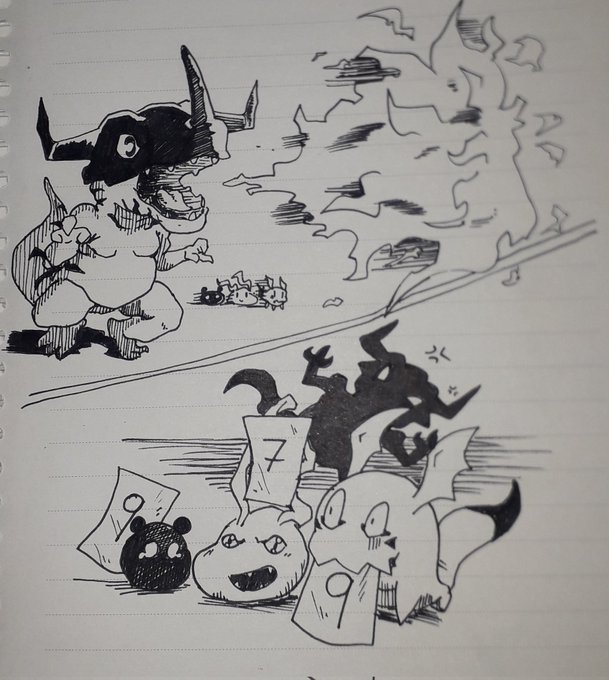 Dias 23 a 26 - Moco - Hada - Tentador - Ego #Inktober #inktober2022 #Digimon #Greymon #Numemon #Pixiemon #Skullgreymon #spookymonth #DigimonGhostGame
