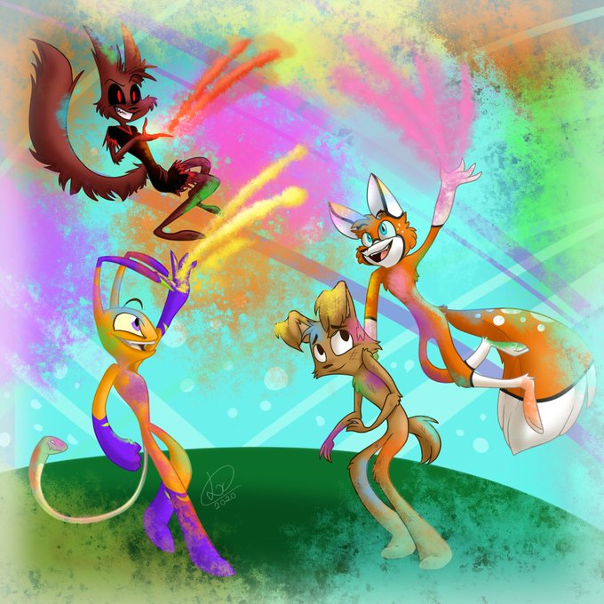 Totally inspired in those funny color's festival. This characters (Zill, Jack, Damian and Spam) do not belong to me, they belong to Vivziepop and are from her webcomic, Zoophobia.#inktober2020 #inktoberthrow #inktoberday9 #vivziepop #zoophobia #digitalillustration