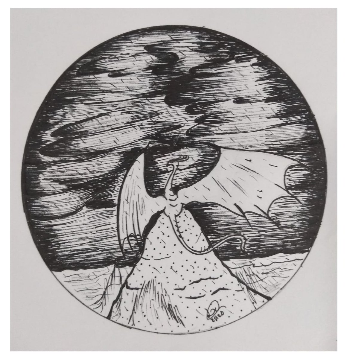 Day 17 - Storm Made it now very quickly, so it seems kinda rushed... #inktober #inktober2020 #inktoberstorm #inktober2020storm #drawing #dragon
