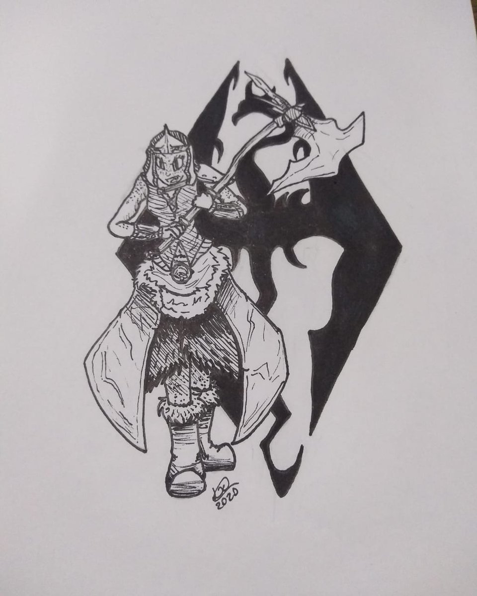 Day 26 - Hide I made the hide armor from Skyrim Didnt post the last two days because i was at my parent's house, just got home now and made this drawing the fastest way i could #inktober #inktober2020 #inktoberhide #theelderscrolls #skyrim #illustration #elderscrolls #dragonborn