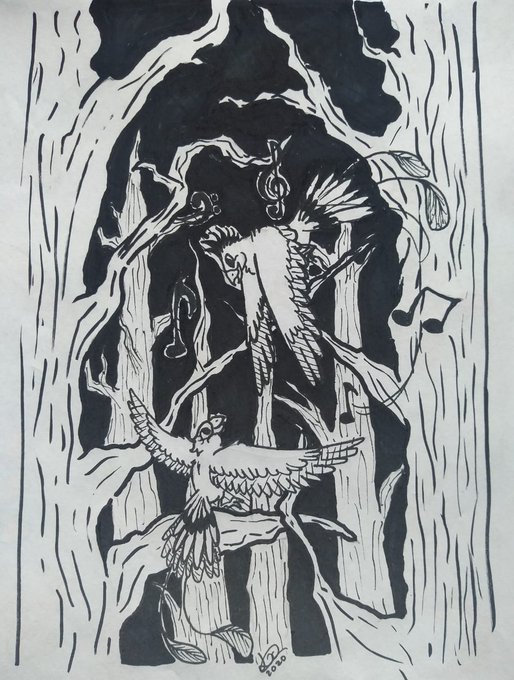 Day 27 - Music Not exactly proud of this one... Someday ill come back with the digital drawings, just having some fun with the pens ;u; #inktober #inktober2020 #inktobermusic #inktoher2020music #illustration #bird