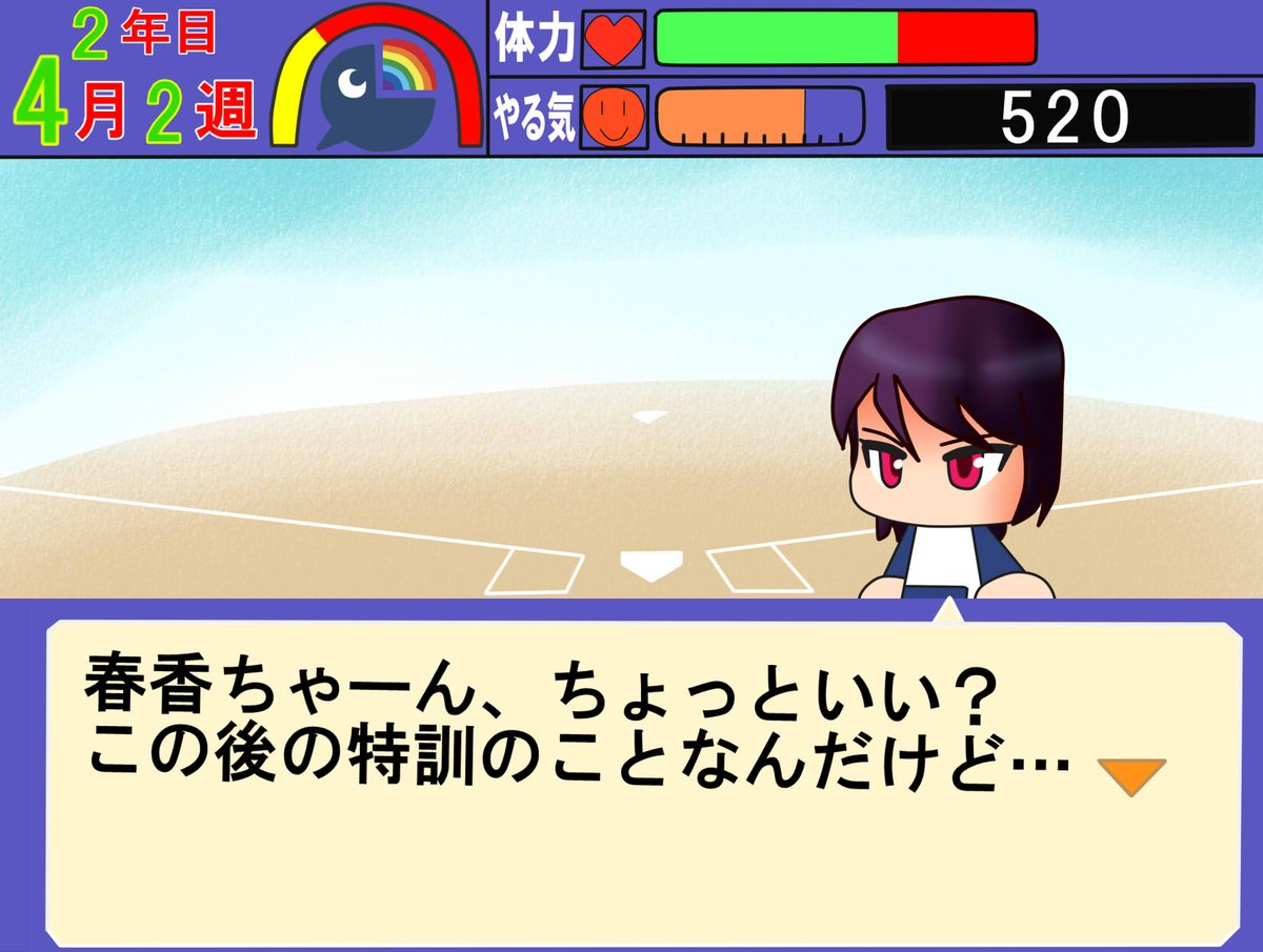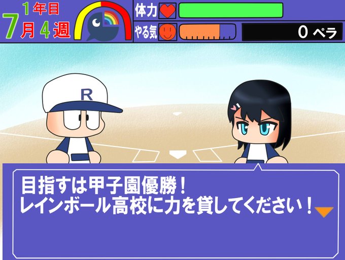 パワポケのサクセス風イラスト、アルスさんを描いて本日のやり取りを再現…? 立ち絵だけあれば本当のパワポケのように動かせる何かがあれば…あれば…あと背景… #小野町絵巻 #マル描いてちょんっ #にじさんじアルプススタンド