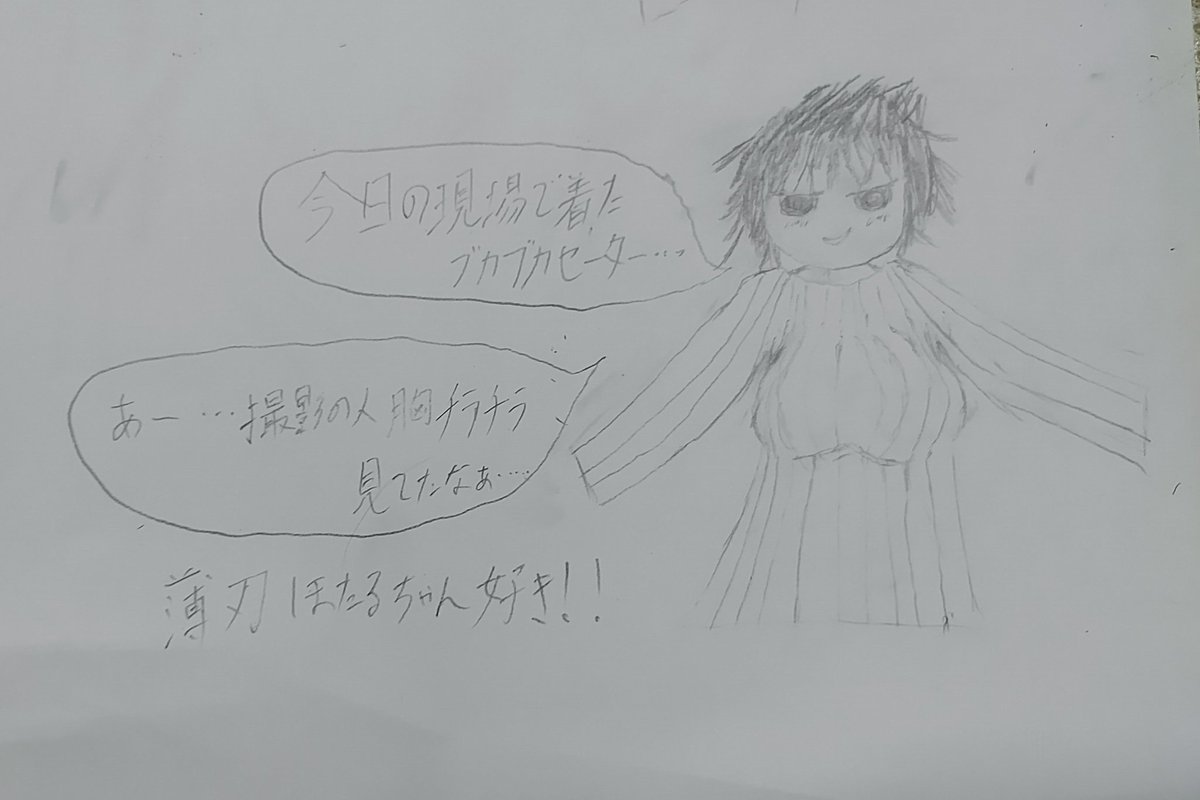 #絵が上手くなりたい旅人 @zurikishi 12万人フォロワーおめでとうございます!! これはめでたいと思い今日手に入れた付け焼き刃のおっぱい画力で 薄刃ほたるちゃんを描かせていただきました! 実際にはもっと可愛くてえっちでサイコです お目汚し失礼しました!