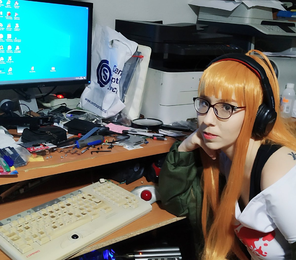 Futaba en su rincón de experta en informática. El desastre es intencionado 😂😂😂 #futaba #sakurafutaba #persona5 #persona5royal #cosplay #cosplaygirl