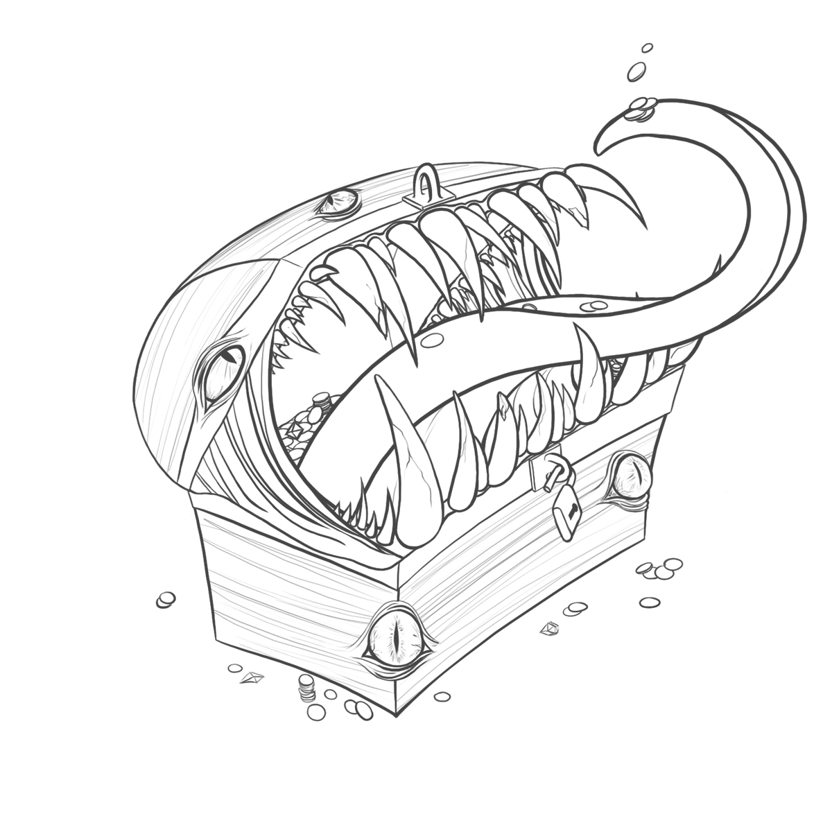 #inktober2021 Day 22: Open You never know what could happen while opening the next treasure chest you find... #ArtistOnTwitter #inktober #inktober2021day22 #illustration #lineart #sketch #dnd #pathfinder #CriticalRole