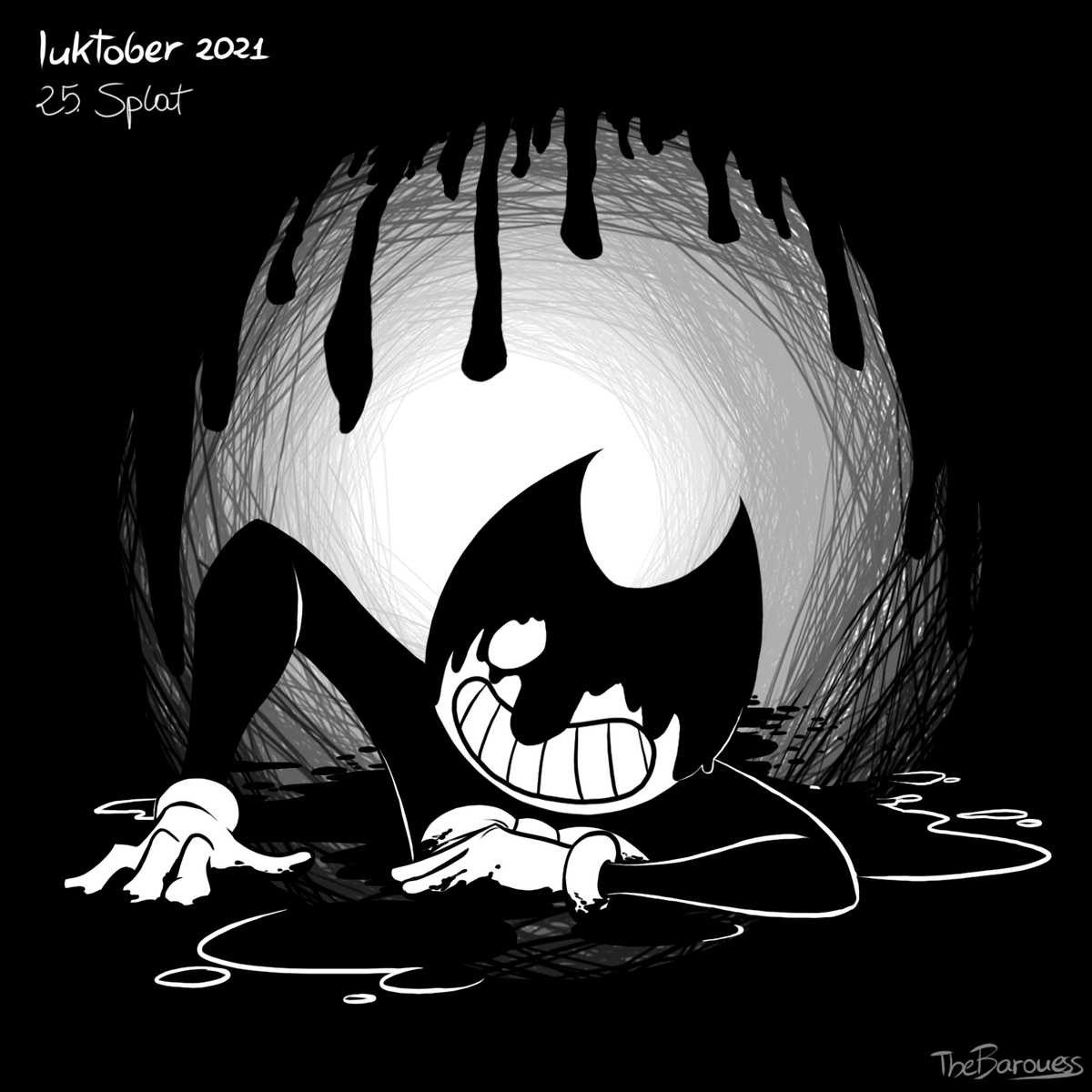 #inktober2021 Day 25: Splat Here's another inky fellow for today's prompt! Did #BENDY scare you? #ArtistOnTwitter #inktober #inktober2021day25 #illustration #lineart #sketch #Fanart #Bendy_and_the_ink_machine
