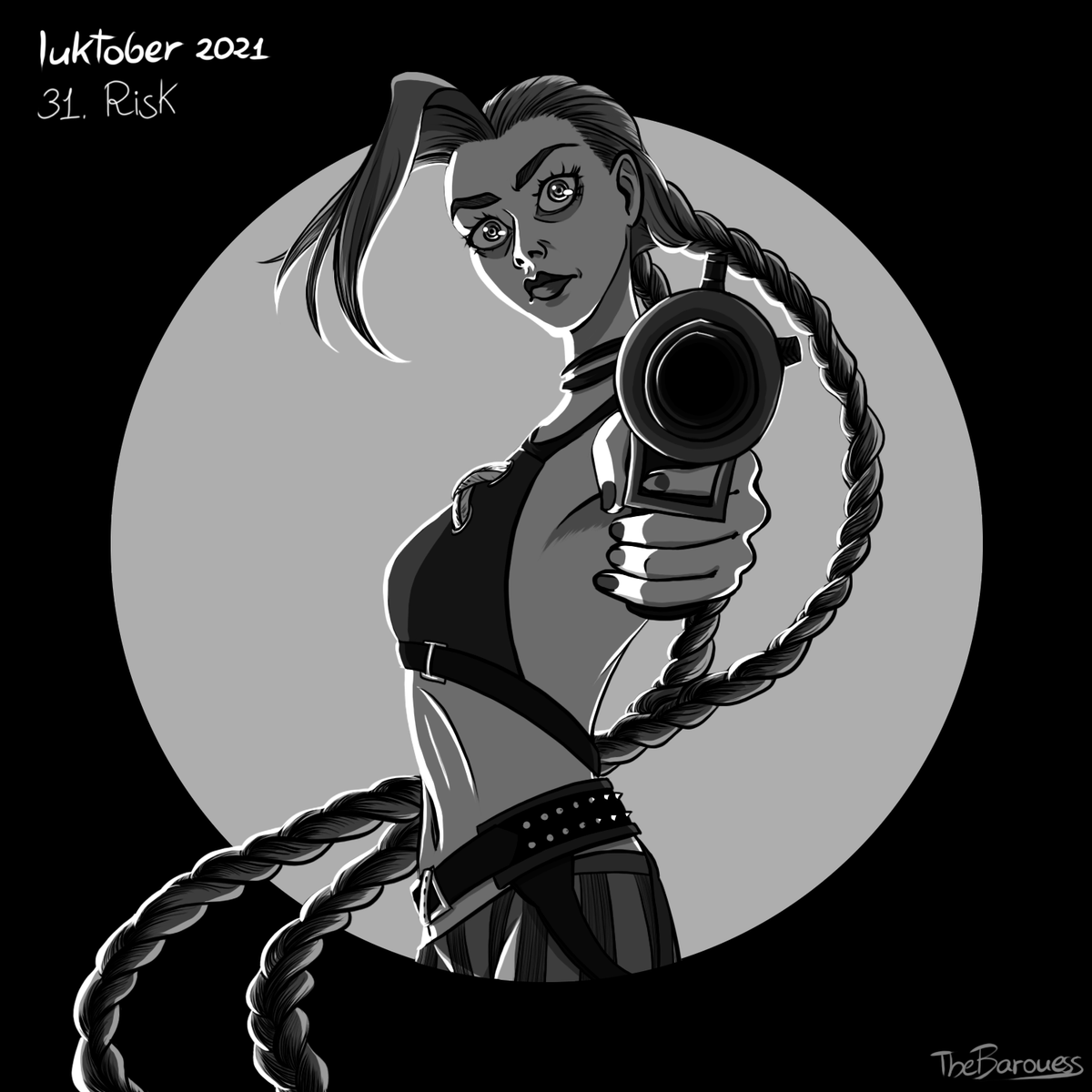 #inktober2021 Day 31: Risk Last but not least, you're risking just by staring at Jinx pointing a gun at you! So hyped for the launch of #Arcane! #ArtistOnTwitter #inktober #inktober2021day31 #illustration #lineart #sketch #Fanart #LeagueOfLegends #Netflix