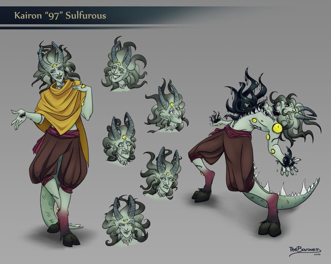 Today is a fine day to upload something a little different, for it has been a *while* since I was asked to prepare an organized #characterdesign for Kairon, the #fleshwarp #tiefling belonging to @zark_o! #pathfinder2e #ttrpgart #digitalart #DnD #commissionsopen