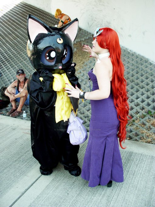 Some Sailor Moon cosplays from years past. I'm in the Luna suit. My art and merchandise thedustyphoenix.com #sailormoon #luna #queenberyl #cosplay #kumoricon #anime