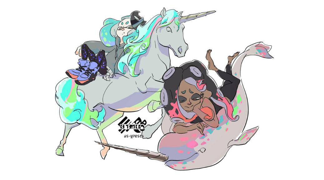 I mimicked the s2 splatfest promo artstyle and still do till this day but with my idols ! twitter.com/RoninElWolf/st…