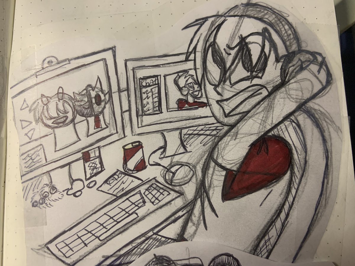 When you’ve been in the Zombie apocalypse for so long you start seeing shadow people. Alternatively titled, 2 cryptids and a gamer. #sneegsnagfanart #charlieslimecicle #tubbofanart #7daydtodie