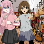 ギター屋さんでバッタリ出会ってしまった陰と陽 #ぼっち・ざ・ろっく #後藤ひとり #けいおん #平沢唯 #イラスト #ぼっち