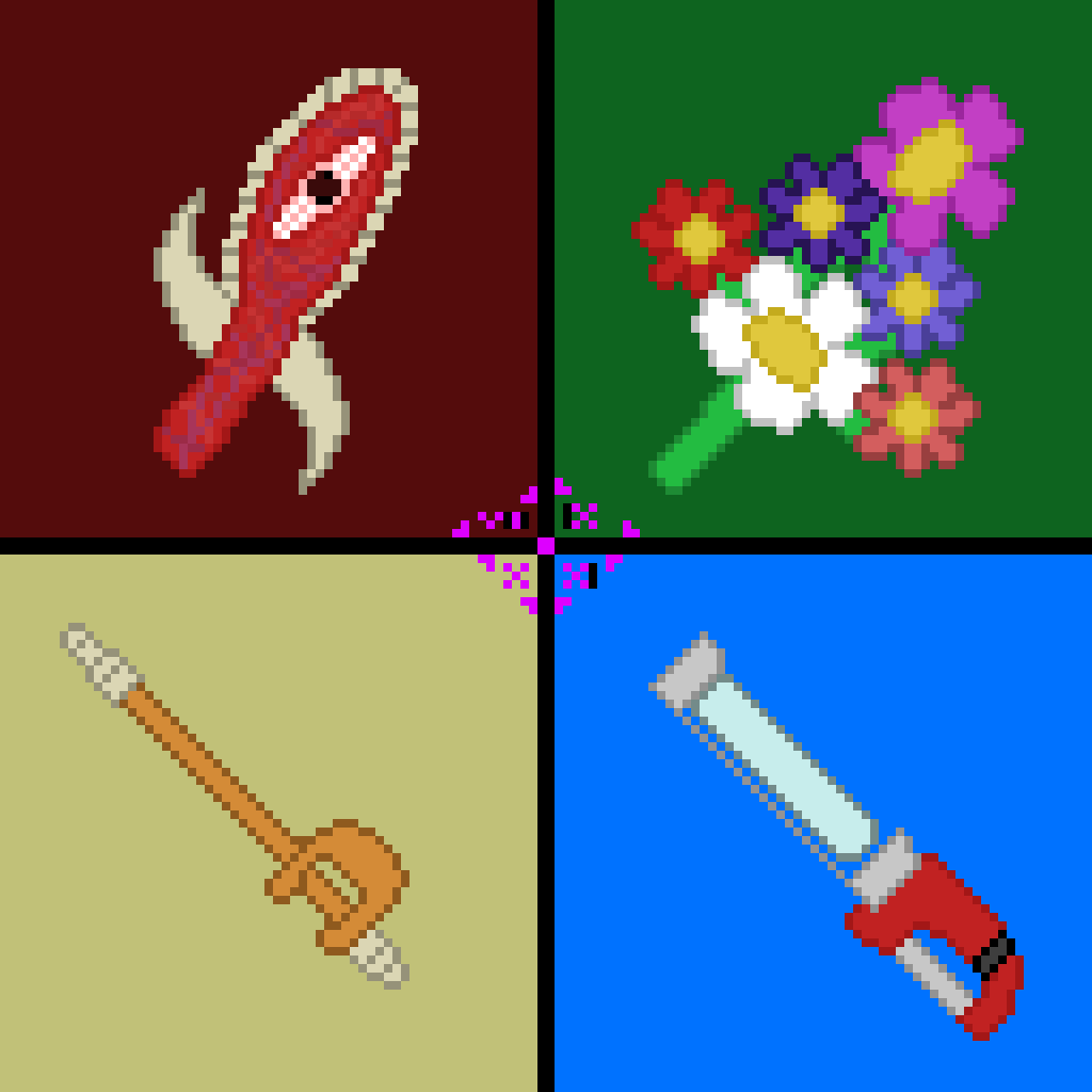 no, i wasn't procrastinating for almost a week straight i deffo didn't stop half way there to watch pyrocynical's cry of fear vid for a third time anyways, here's my swords for the 1st, 3rd, 4th and 5th day of swordtember, more comimg tmrrw #swordtember2022 #swordtember #pixelart