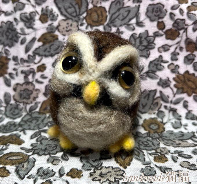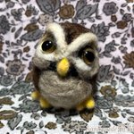 1 11 小さなフクロウbaby なかなか立たなくて苦戦したけどなんとか😓 5×3.5㎝程の小さめサイズ 小さいから簡単、短時間でできるものでは無いと改めて実感🤔 手芸屋には欲しい色がないのですが、自分で混ぜ混ぜして作るの楽しかった♪ #羊毛フェルト 22/05/22 14:33