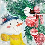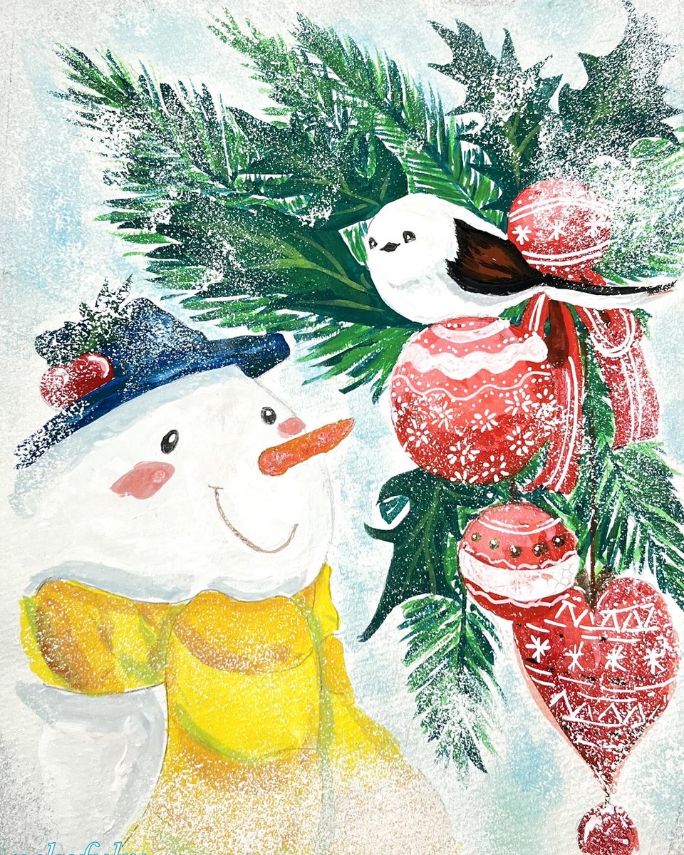 水彩絵の具で スノーマンの小さなお友だちを描きました⛄️ (季節先取りしすぎって言わないで〜😭) カワイイものが大好き💕 白いものってカワイイ子が多すぎな気がしませんか? #水彩画 #手描き #雪だるま #シマエナガ