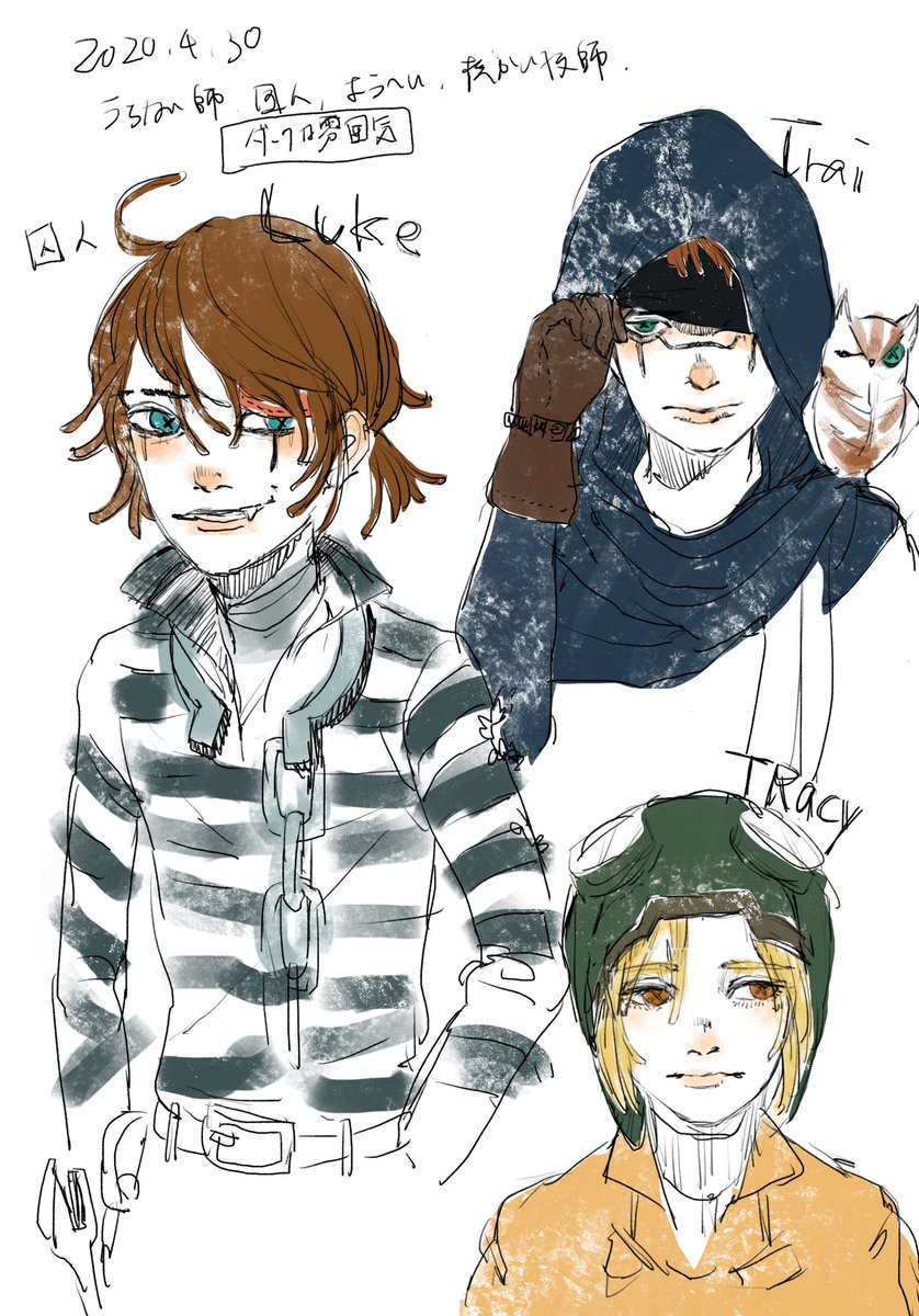 そういえばこんな落書きが残ってました。 技師は弱体前使ってました…。ルカくんは新しいスキンが出ましたね。 #第五人格イラスト #呪術師 #傭兵 #第五人格絵描きさんと繋がりたい #第五人格ファンアート #第五人格傭兵 #identityVイラスト #IdentityV