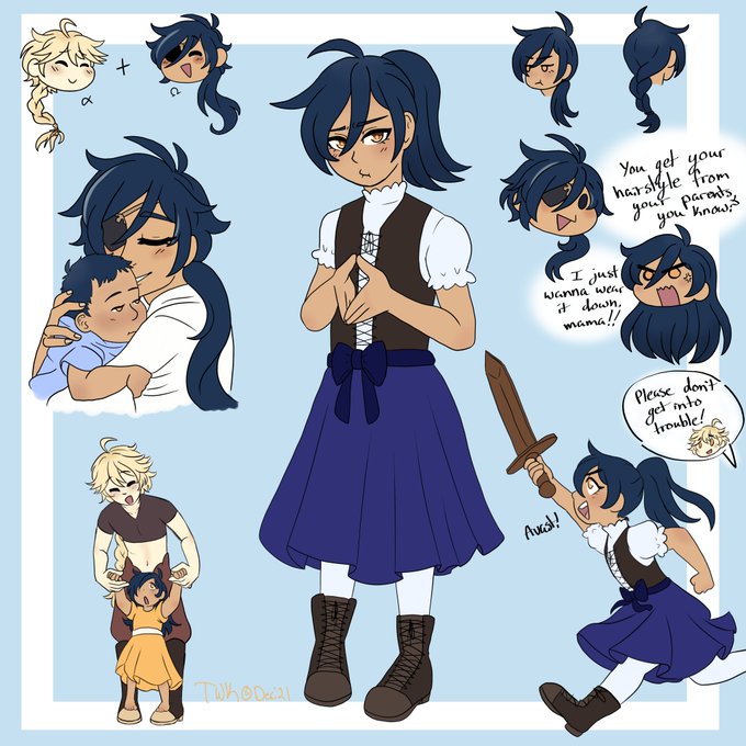this has been in the work for /months/ glad that it got done just before the new year starts my first #kaether child oc, and first genshin baby too Her name is Misty (Aether was reminded of mist flowers bc of hair color) #genshinimpactfanart #omegaverse