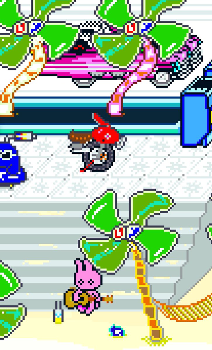 サタナこうちのはっしゃだいでライブリハーサル。 ここでも「AXIS BEST GEARSし゛は゜んく゛えでぃしょん」linkco.re/dND0vsn9のリリースイベントに向けてもりあがっているよ。 トップバッターのバンド「4GHz」とATVがデンパの調子をチェックしてるね。 -うさぎB #ドット絵 #pixelart