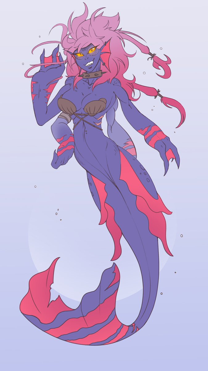 It's #mermay2023 so I'm legally obligated to draw one Mermaid. She's creepy and weird but she's doing her best.