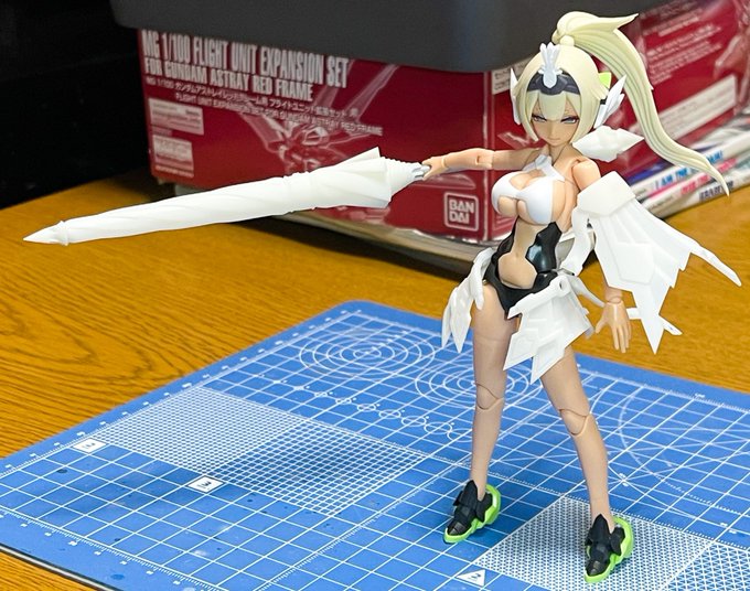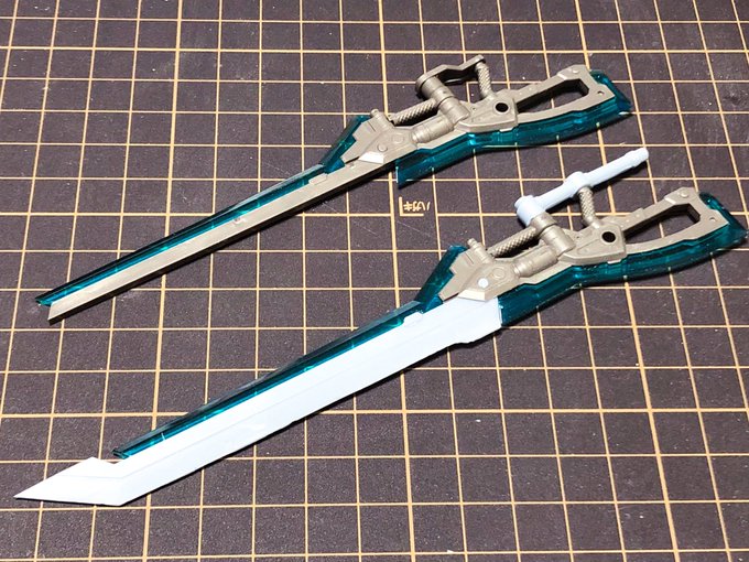 新作2アイテムはセットで装備するとサマーウェポンになるようデザインしております ちなみにスカートアーマなどの新作や #メガミデバイス 用のカスタマイズパーツなどまだまだ色々準備中だったりしますので、ご興味のある方は今後のTG-Worksさんをチェックしてみてください! tg-works.booth.pm