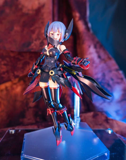 #UNリアルver2 #出るぜUNreal 久しぶりのガール新作『ヴィオラ・バレット』 #メガミデバイス エクスキューショナーをベースにオリジナルのファッションアーマーと、翼のようなデザインのツインマシンガンを装備でドレスアップ ダークでシックな雰囲気にまとめています( ^w^)