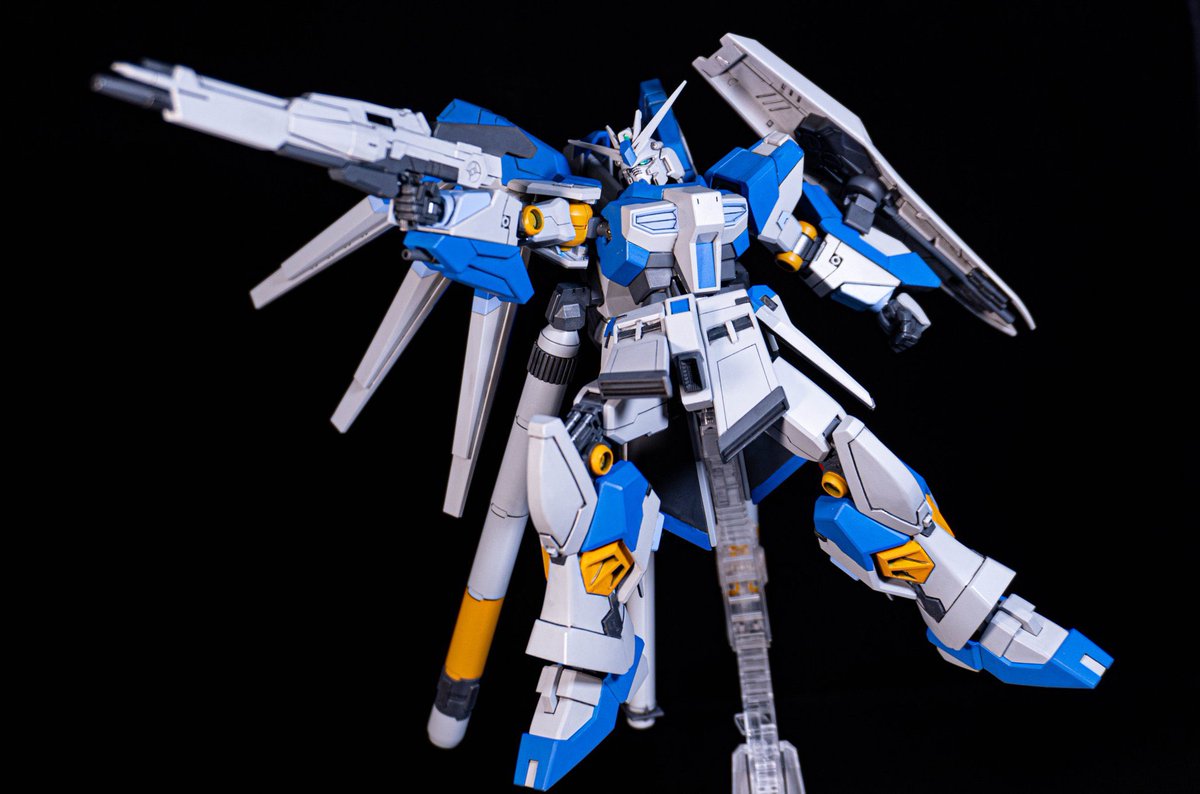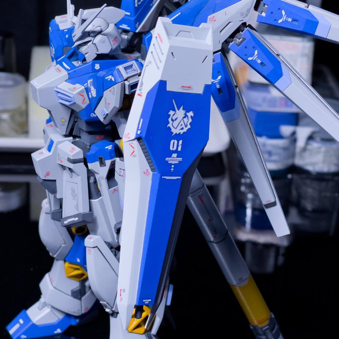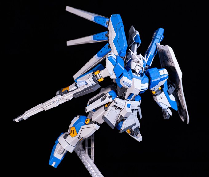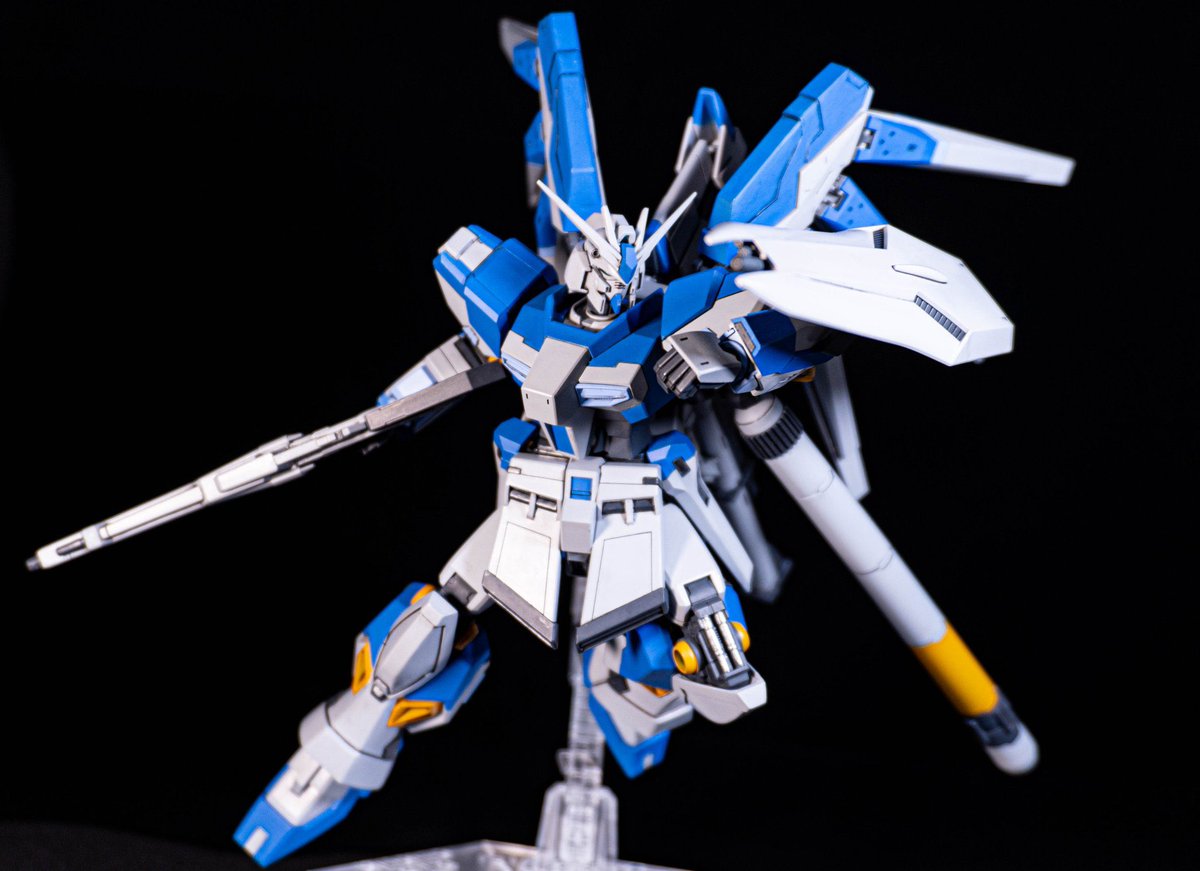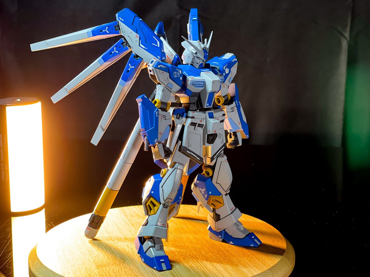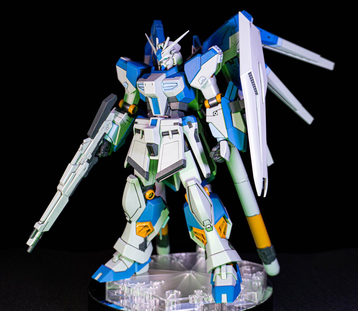 #個人的に今年1番頑張ったプラモデル見せてください エントリーグレードを改造したHi-νガンダムだわさ ファンネル周り以外はEGνガンダムをベースに改造とスクラッチパーツで作っていて、イベント用に23日間で完成させたのは今考えてもマジでどうかしてたと思うw
