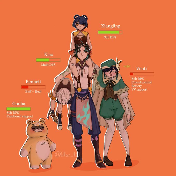 I just had to draw my genshin team, I love them so much 💛 I like to think that Xiao cares extra for Xiangling, just because only she can cook almond tofu in this team Imaoo #genshinimpact #genshinimpactfanart #genshinimpactteam #genshin #xiao #venti #bennett #xiangling #Fanarts