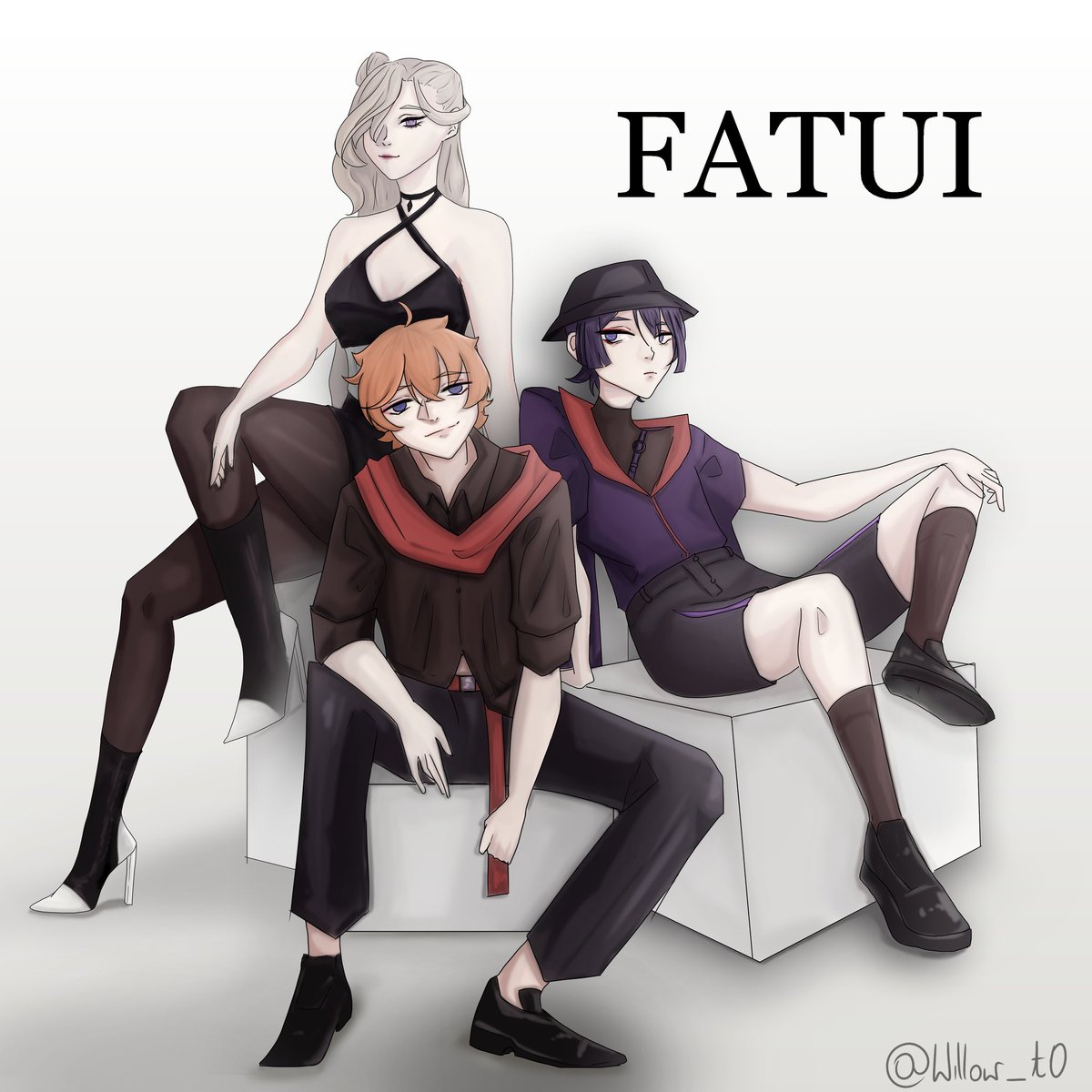 [Genshin idol AU] Aghh, lately I'm daydreaming about genshin idol AU and I'm thinking about making more art with that, so here's first group- Fatui #GenshinImpact #genshinidolau #scaramouche #tartaglia #signora #art #famart #genshinimpactfanart